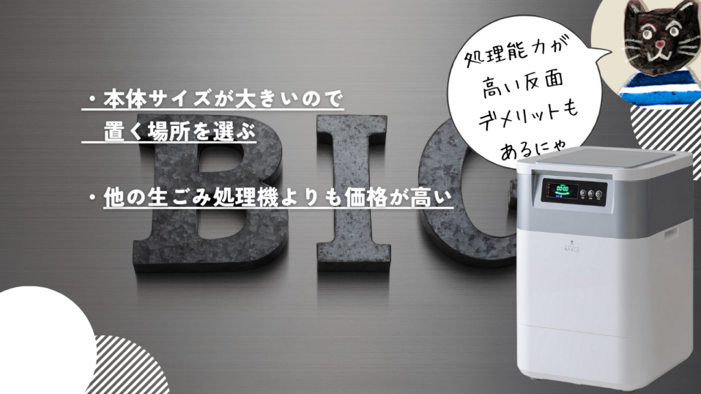 高評価を得ている生ごみ処理機ワンニャクスルですが、全くデメリットがないというわけではありません。以下、口コミ・評判から分かるワンニャクスルのデメリットをまとめました。