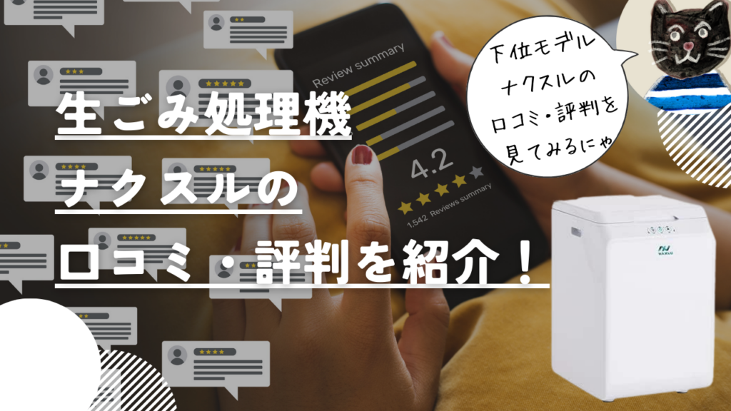 生ごみ処理機ワンニャクスルは、同メーカーから販売されているナクスルという製品の上位モデルとして発売されました。発売されてから間もないため、ワンニャクスル自体の口コミ・評判はまだ少ないですが、その下位モデルであるナクスルの口コミ・評判を見ることでワンニャクスルへの評価もある程度予想することができるでしょう。